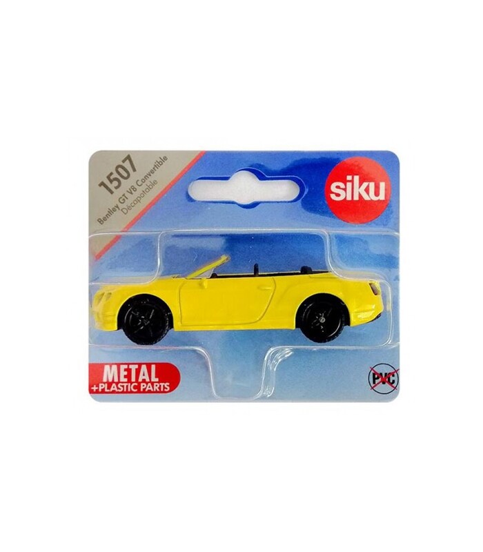 Întotdeauna conducerea unui Bentley are ceva special. Si acest Bentley de la Siku este cu adevărat special: galben și 520 CP. Când soarele strălucește, acoperișul complet coborât al decapotabilei este o invitație la o croazieră relaxată. Pe modelul SIKU realizat din metal, cu faruri si stopuri aplicate, anvelopele de tracțiune montate pe jante de sport negru mat oferă contactul necesar pe suprafața drumului din camera de joaca. Noul Continental GT V8 Convertible extinde astfel flota deja impresionantă de mașini sport care oferă multă distracție la volan, în special in versiuni decapotabile. Dimensiuni: 8 / 3,5 / 2,3 cm