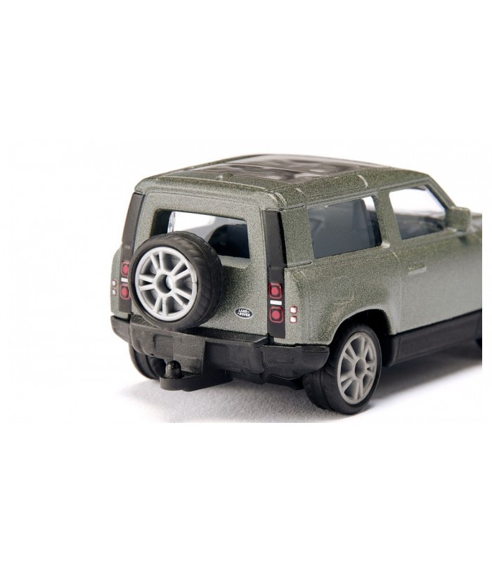 Modelul Siku are și o roată de rezervă la spate, fiind dotat cu cârlig de cuplare a remorcilor. Farurile și lămpile spate sunt imprimate fidel, urmând detaliile originalului, iar pe șasiu sunt inscripționate performanțele motorului, o inovație de tradiție a Siku. Atât în față, cât și în spate, sunt imprimate cu vopsea de calitate siglele Land Rover și Defender. Dimensiunile acestui model sunt 7.8 x 3.6 x 3.2 cm.