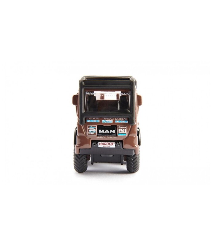 HS Schoch 8x8 MAN Truck-Trial a fost proiectat și dezvoltat pentru concursuri pe terenurile extreme. Vehiculul campionului european pentru camioane de 8 x 8 este decorat cu autocolantele sponsorilor originali și este echipat cu o bară de protectie exterioară. Cu cele două semne incluse în pachet si caroserie metalica la scara 1:87 locul de joacă devine un adevărat teren de încercare. Pentru copii peste 3 ani! Dimensiuni: 10 x 3 x 4,5 cm