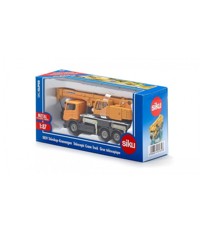 Scania la scara 1:87 cu cabina si sasiu metalice, platforma metalica si macara de calitate. Macaraua are licenta originala Liebherr, se poate ridica sau roti manual si este dotata cu accesoriile caracteristice, ca in realitate, inclusiv un carlig greu metalic care face manevrarea deosebit de placuta. Este dotata cu piloni de sustinere care echilibreaza macaraua. Este ambalata intr-o cutie eleganta avand dimensiunile: 10 x 4,8 x 3 cm. Anvelopele cauciucate si constructia solida garanteaza o tractiune ferma astfel incat manevrabilitatea ofera multa placere! Recomandat copiilor peste 3 ani. Dimensiuni produs: 8 cm x 3 cm x 4 cm