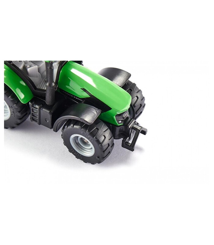 Tractor solid realizat din metal, Deutz-Fahr TTV 7250 Agrotron, in seria de buget 10, ambalat blister, cu cabina din plastic demontabila. Dimensiuni 6,7 x 3,5 x 4,2 cm. Recomandat copiilor peste 3 ani