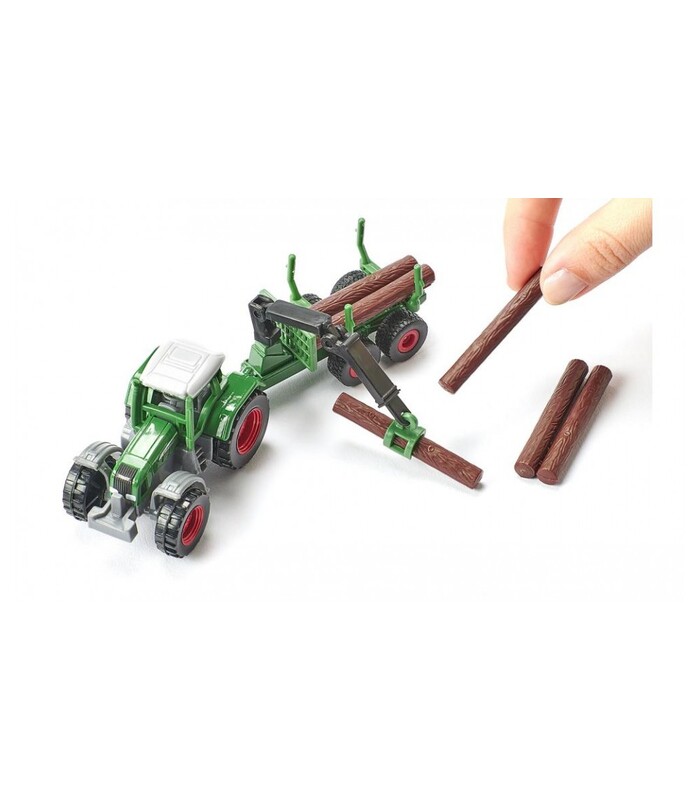 Tractor Fendt Vario realizat de Siku din metal in seria entry level Blister 16 cu remorca forestiera. Aceasta are sasiu metalic echipata pentru transport lemn si dotata cu macara. Bustenii sunt realizati din plastic si sunt inclusi. Dimensiuni: 14,7 x 3,9 x 5,8 cm. Este ambalat intr-o cutie tip blister avand dimensiunile 21 x 3 x 5 cm. Recomandat copiilor peste 3 ani.