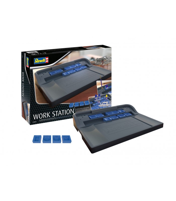 Totul in perfecta ordine! Statia de lucru Revell este un loc de munca ideal pentru toate lucrarile legate de modelare. Include spatiu practic de depozitare si insertii variabile pentru scule, perii si accesorii, precum si o adancitura adecvata pentru salteaua de taiere Revell.