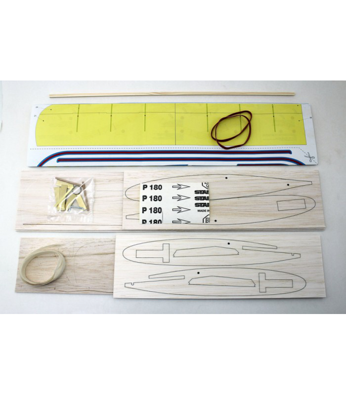 Un planor deosebit ca aspect si calitati de zbor, care poate fi folosit si pentru competitii amicale. Kit-ul contine piese de lemn balsa, tija din pin pentru fuselaj, greutati pentru echilibrare, carlig de remorcaj, smirghel si autocolante colorate