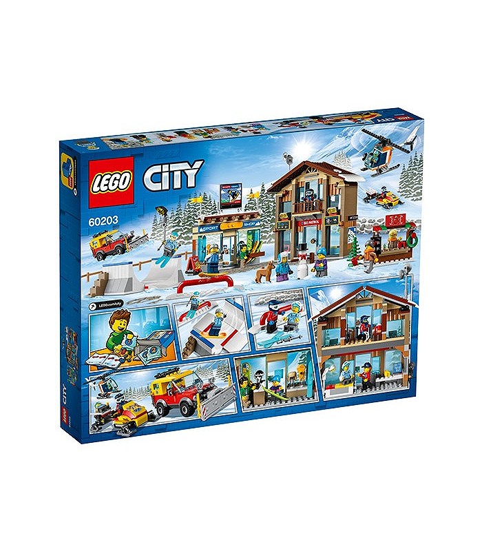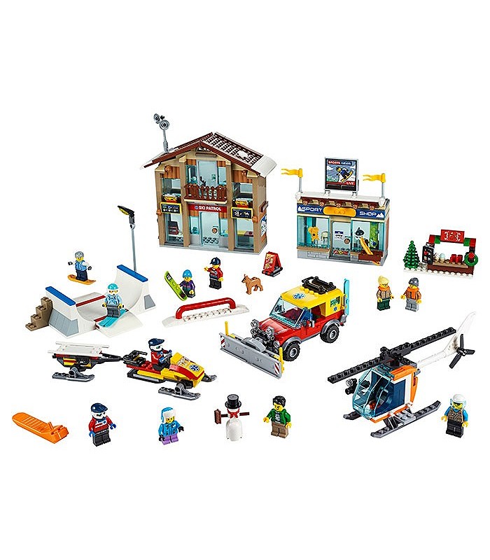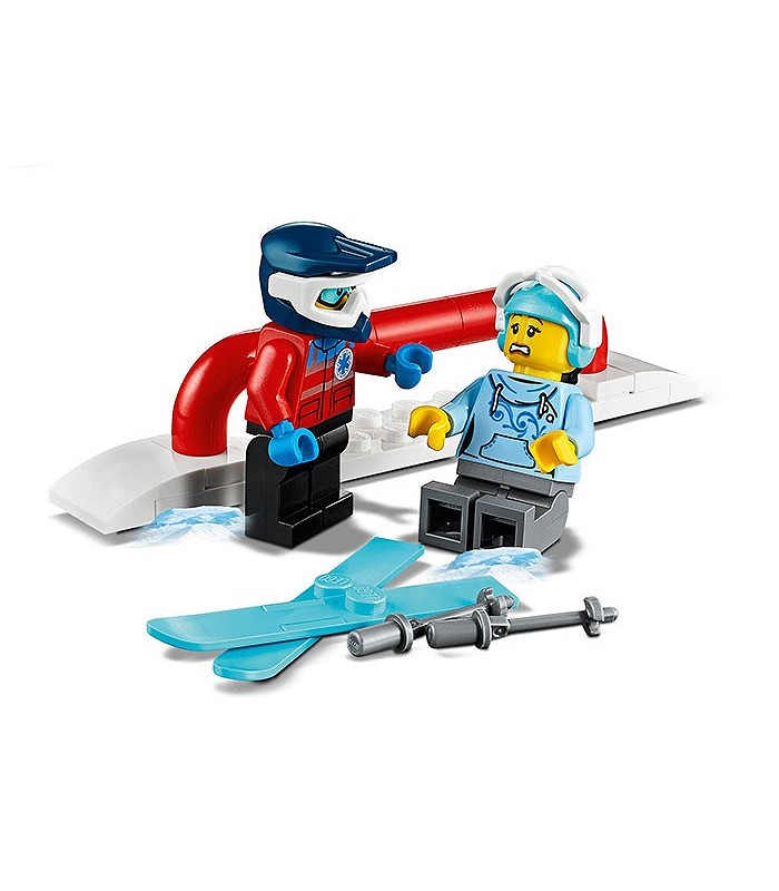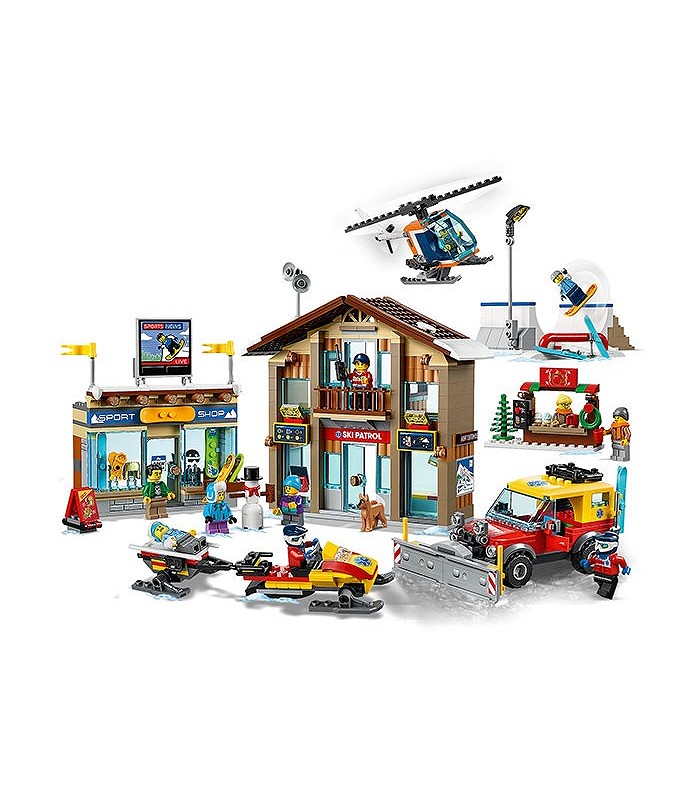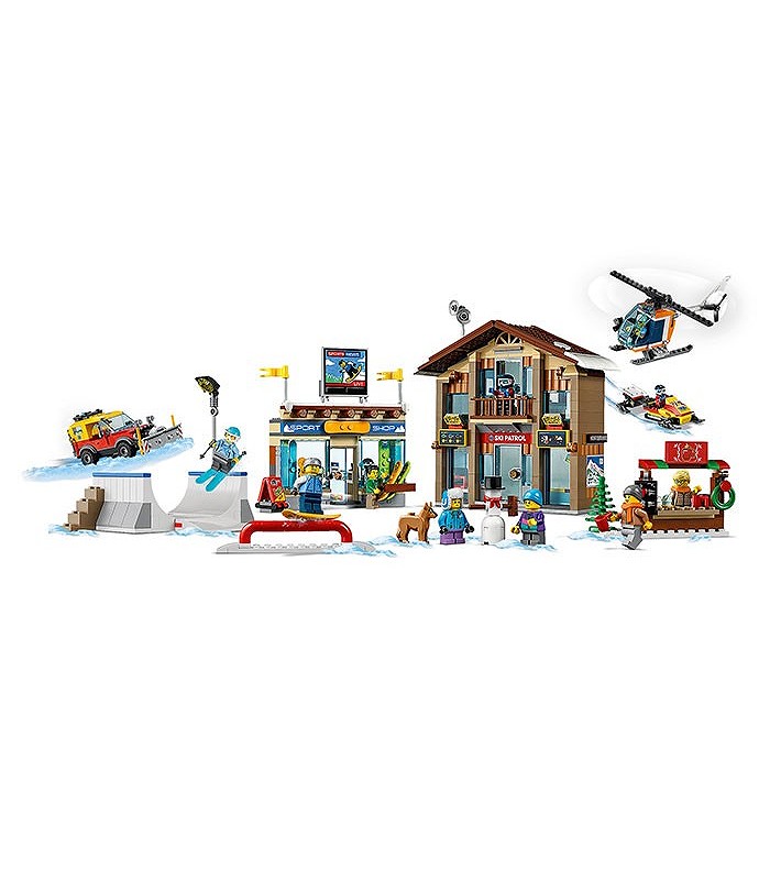 • Include 11 minifigurine LEGO® City: 3 membri ai patrulei de schiori, un vânzător de magazin de schiuri, pilot de elicopter, schior, snowboarder, 2 copii, vânzător la chioșcul de băuturi calde și un client, plus figurine câine și om de zăpadă construibil.