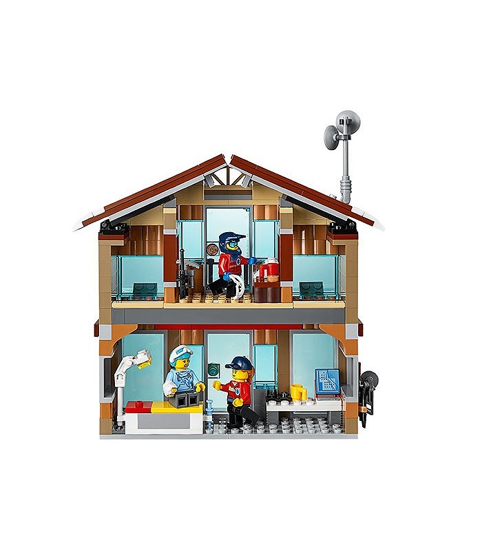 • Acest set de construcție distractiv are o bază de salvare pe 2 niveluri, magazin de schiuri cu ecran TV mare și rastel pentru schiuri și snowboarduri, chioșc cu brioșe și băuturi calde, și un parc cu zăpadă super cu stâlp de iluminat, jumătate de țeavă și bară de skateboard separată.