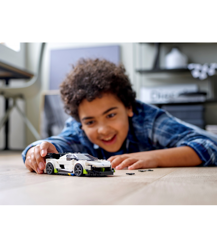 Acest model de colecție vine cu un șasiu lat cu spațiu pentru un cocpit cu 2 locuri și multe alte detalii autentice. Și cu o minifigurină pilot Koenigsegg completat cu costum de curse, cască de protecție și cheie fixă, există inspirație din plin pentru joaca imaginativă.